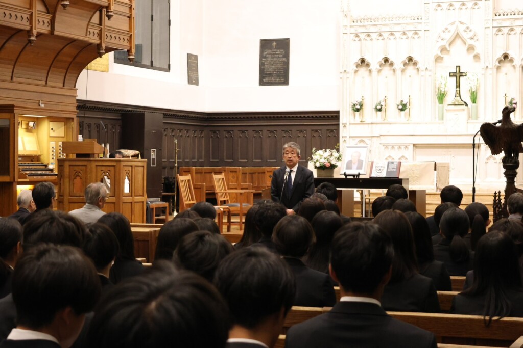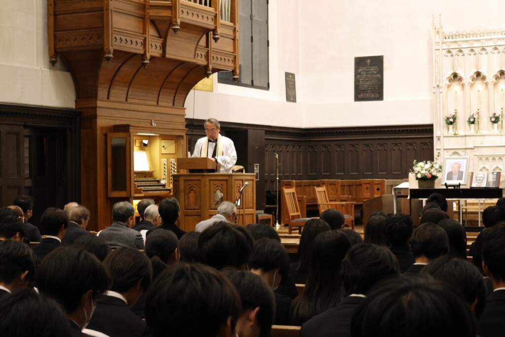 礼拝は、中川英樹チャプレンによる説教のもと厳かに執り行われました。
